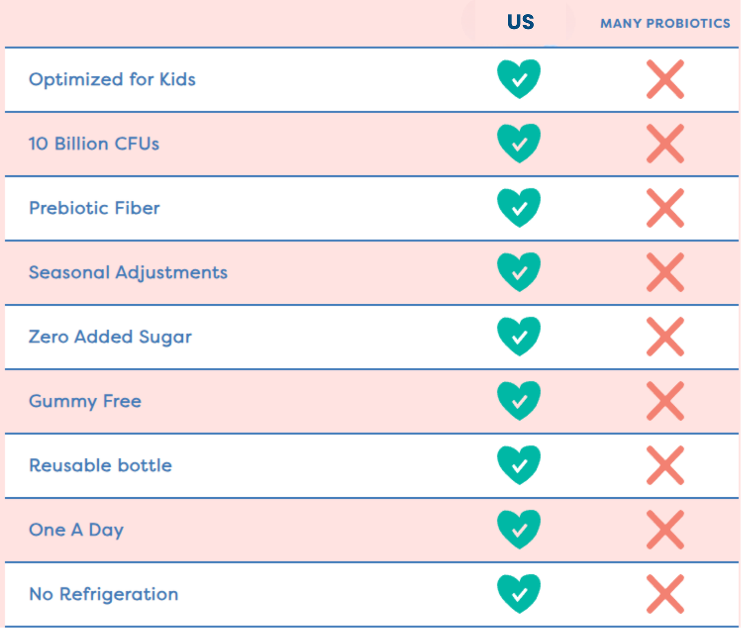 Our probiotic is an evolving set of strains based on seasonality to make sure your kids are always getting what makes the most sense based on the latest science.
